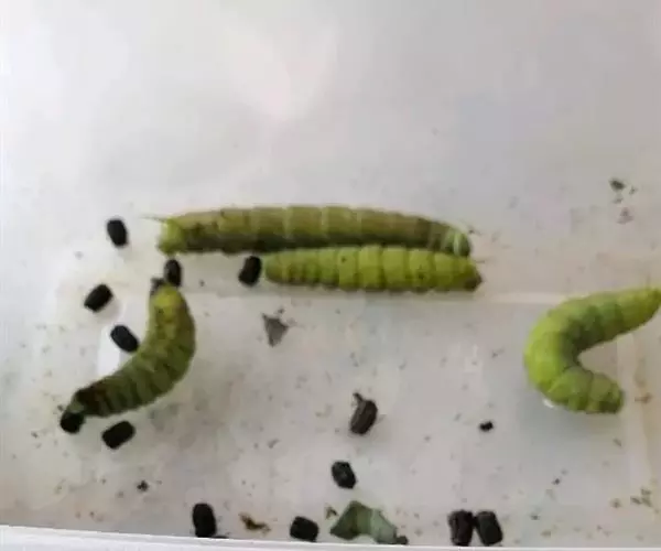 初孵幼虫结疏松网在叶背群集取食叶肉,受害部位呈网状半透明的窗斑,干枯后纵裂:三龄后幼虫开始分群危害,可将叶片吃成孔洞、缺刻,严重时全部叶片被食尽,整个植株死亡。四龄后幼虫开始大量取食,蚕食叶片,啃食花瓣,蛀食茎秆及果荚 。
