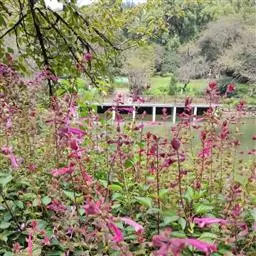 春季枝头悬挂淡紫色小花,很多也很漂亮,花期1个月左右。叶片全年呈现出淡淡的蓝灰色,远远望去与其他植物形成鲜明的对照。