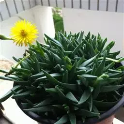 照波,番杏科多肉植物、 此种生长较快,栽培容易,细长的浓绿色叶3厘米左右,开黄色花。 浇水也是以干湿交替进行,但要防止长期干旱与湿涝。夏季高温需遮阴,忌暴晒。