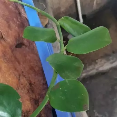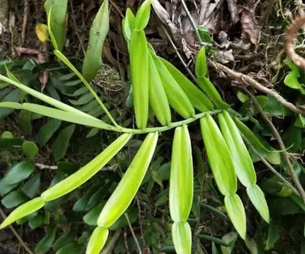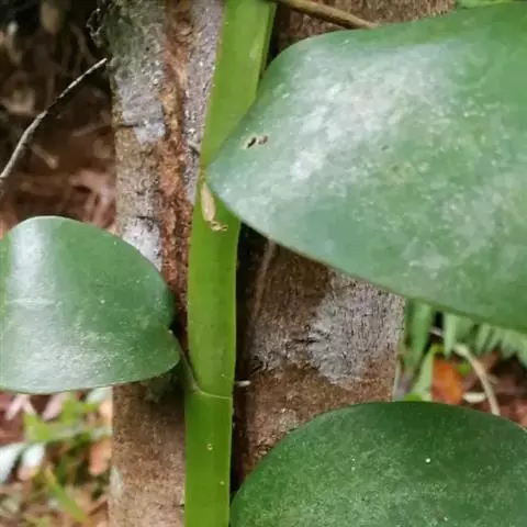 附生藤本,长0.4-6米。茎亚木质,淡褐色,近圆柱形,具纵条纹,粗约2厘米,节间长1-4厘米,节上常束生长1-3厘米的气生根;分枝,枝下部常具鳞叶1枚;鳞叶线形,长4-8厘米,宽3-7毫米,锐尖,具多数平行纵脉。