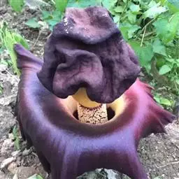 花序腋生,基部具苞片4-5(-6)枚;苞片卵形,长5毫米,上部的渐大,纵脉多数;花序柄长0.8-1.8(-2)厘米;佛焰苞卵状,绿色,长8毫米,展开宽10(-15)毫米,锐尖;肉穗花序短,椭圆形至近圆球形,淡绿色、淡黄色,长7-8(-11)毫米,粗5-6(-10)毫米,花序梗长3-5(-8)毫米。