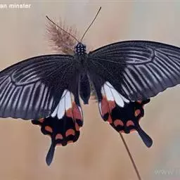 美凤蝶又名多型蓝凤蝶、大凤蝶,是鳞目凤蝶科凤蝶属动物。美凤蝶雄蝶无尾突,翅黑色,…