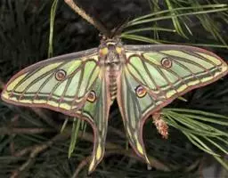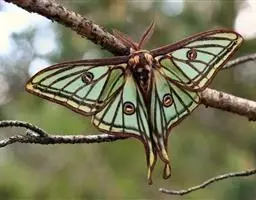 蛹期——蛹为带蛹,长 30~ 35 mm,呈淡绿色或淡褐色,体表粗糙,状似青苔。丝带通过后胸背方,悬挂于固定物上,为灰或白色。中胸背方稍微隆起,头部前端中央凹陷呈分叉角状,背线稍微脊起呈黄色,各腹节亚背线有褐色斑,第 1~3 腹节向两侧扩张,第 4~10 腹节则逐渐变尖,外观拟态叶片状。蛹期约为 15~30 天不定,视温度而定。老熟幼虫于寄主植物枝条或附近隐密之植物枝叶间,寻找适当地点吐丝化蛹。
