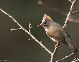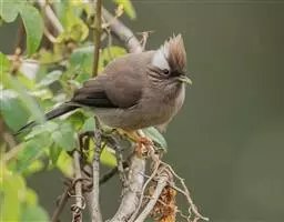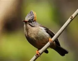 纹喉凤鹛:小型鸟类,体长13-16厘米。头顶和羽冠暗褐色或褐灰色,上体橄榄褐色,飞羽黑褐色,…