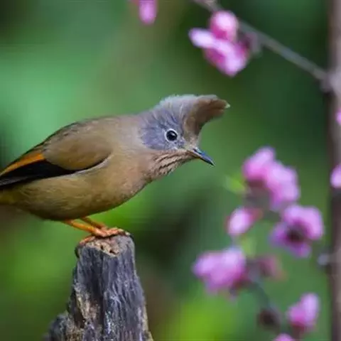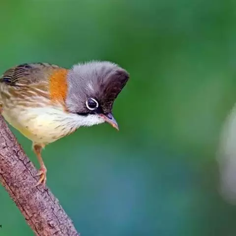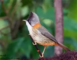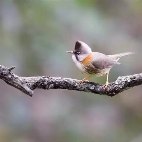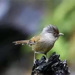 栗耳凤鹛,雌雄羽色相似。额、头顶至枕灰色,头顶有一短的不甚明显的羽冠,…