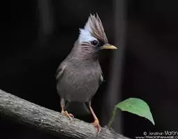 白领凤鹛是画眉科的一类动物。体长15-18厘米。头顶和羽冠土褐色,具白色眼圈,眼先黑色,枕白色,…