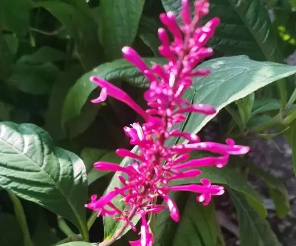 火焰花(学名:Phlogacanthus curviflorus (Wall.) Nees)是爵床科,火焰花属灌木,高可达3米。叶椭圆形至矩圆形,顶端尖至渐尖,基部宽楔形,叶片上面密生小点状钟乳体,光滑无毛,背面被微毛,聚伞圆锥花序穗状,顶生,花梗密被短绒毛;苞片和小苞片微小;裂片三角状披针形,密生微毛;花冠紫红色,花药背着生,蒴果长,圆柱形,有种子。花期4-5月。
