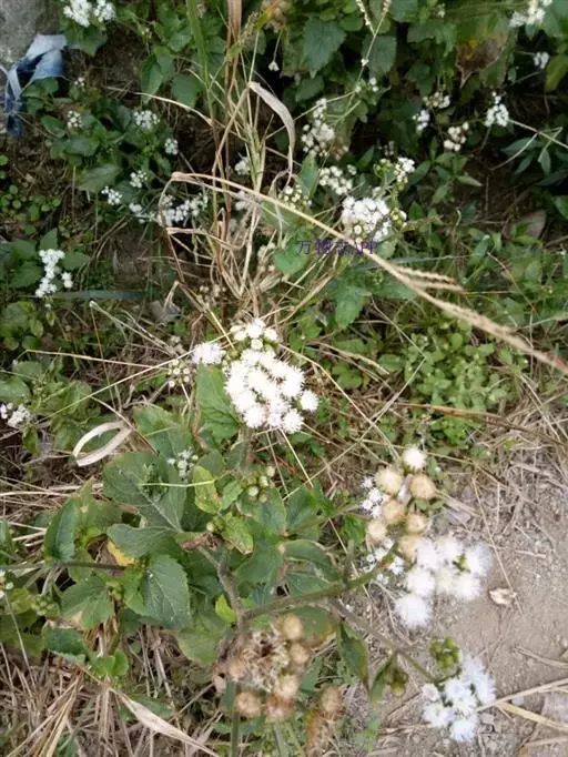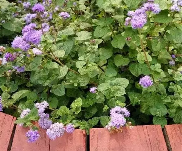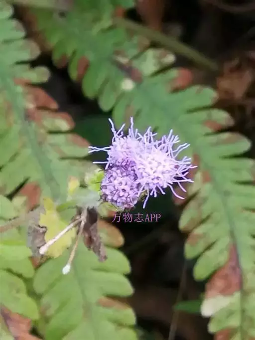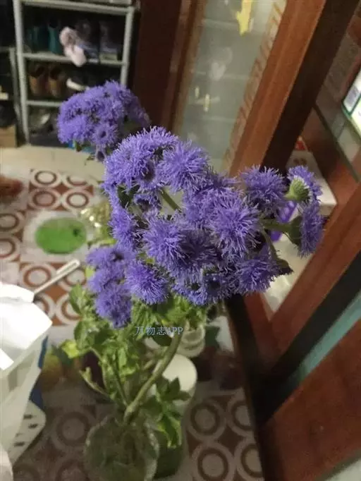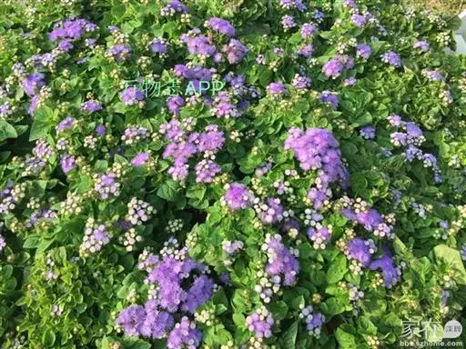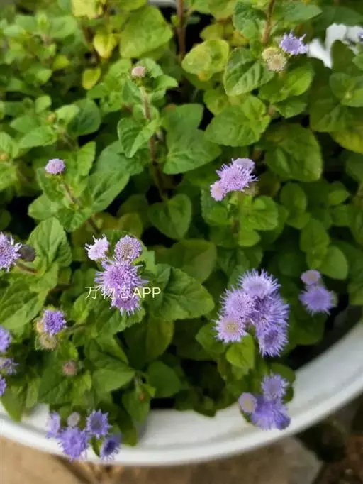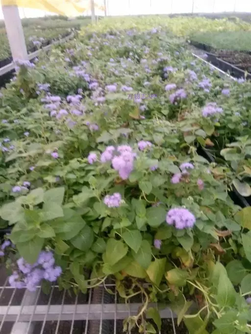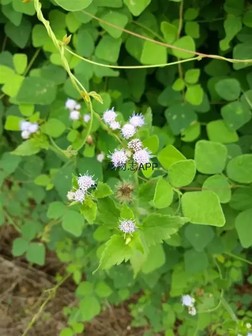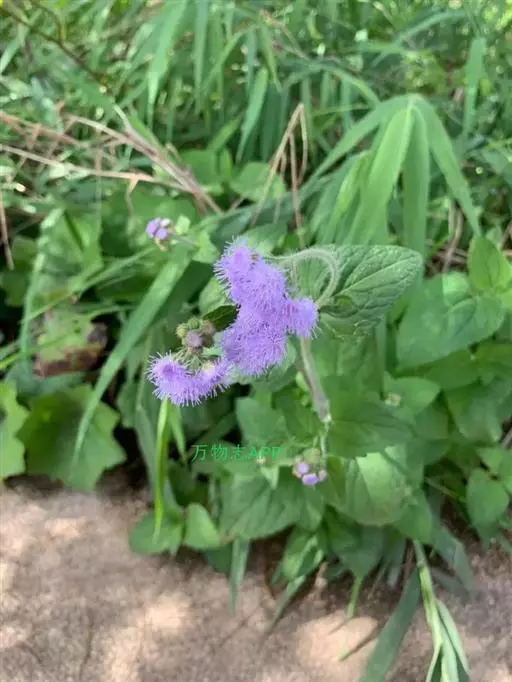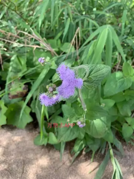 熊耳草(学名:Ageratum houstonianum Miller)菊科藿香蓟属植物,一年生草本,高30-70厘米或有时达1米,无明显主根,全部叶有叶柄,柄长0.7-3厘米,冠毛膜片状,5个,分离,膜片长圆形或披针形,顶端芒状长渐尖,有时冠毛膜片顶端截形,而无芒状渐尖,花果期全年。