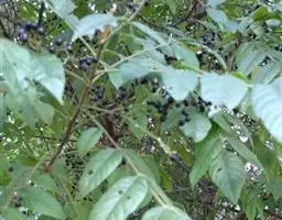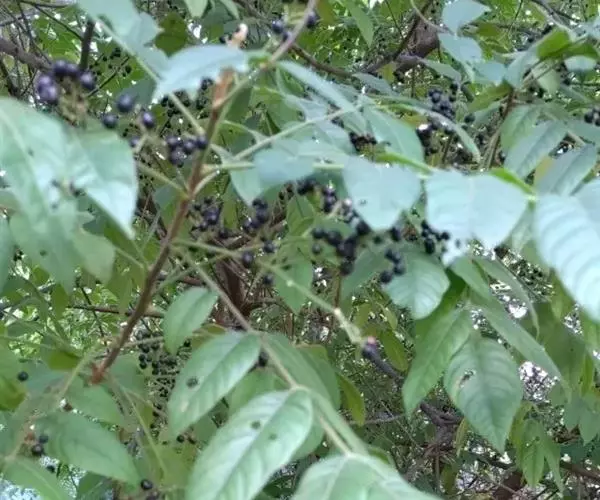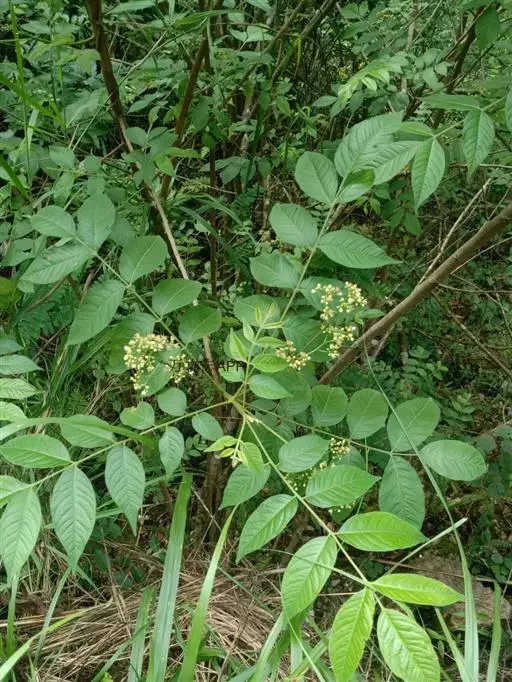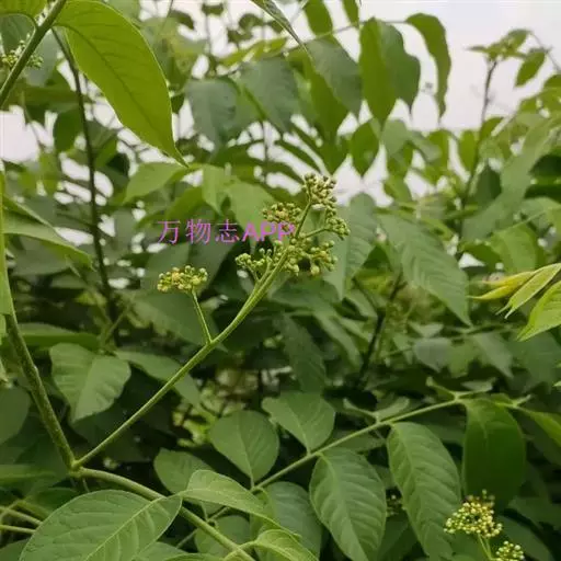 灌木或小乔木,高1—10米;树皮淡褐色;小枝幼时被细柔毛,后渐无毛。叶连柄长8—25厘米,叶轴被疏柔毛至无毛,有小叶4—6对;小叶对生,膜质,长卵圆形至椭圆形,长1.5—8厘米,宽1—3厘米,先端短渐尖,基部阔楔形表面无毛或沿中脉有疏柔毛,背面沿中脉和侧脉被稀疏、紧贴的长柔毛,侧脉8—10对、纤细;具短柄。圆锥花序长8—13厘米,近无毛。花白色或淡黄色,径约3毫米;萼5齿裂,裂齿阔三角形,外面被细柔毛,花瓣膜质,长椭圆形,长约2.5毫米,短尖,近无毛,雄蕊管无毛,花药卵形,无毛;子房无毛。果紫红色,径约4毫米。花期4—6月,果12—2月成熟。