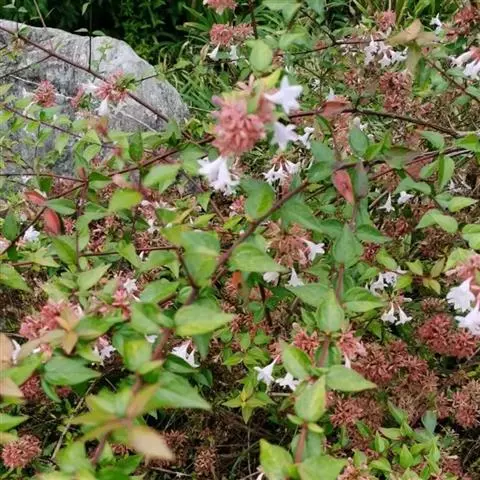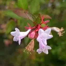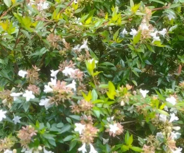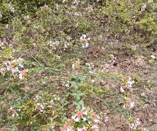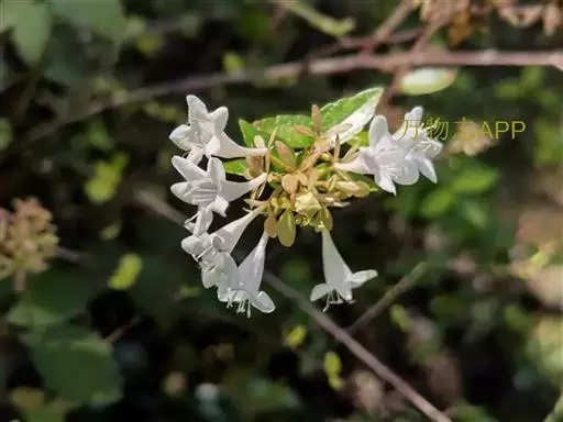 六道木(学名:Abelia biflora Turcz.)是忍冬科、六道木属落叶灌木,高可达3米;叶片矩圆形至矩圆状披针形,顶端尖至渐尖,基部钝至渐狭成楔形,上面深绿色,下面绿白色,边缘有睫毛;叶柄被硬毛。花单生于小枝上叶腋,无总花梗;花梗被硬毛;小苞片三齿状,花后不落;萼筒圆柱形,疏生短硬毛,萼齿狭椭圆形或倒卵状矩圆形,花冠白色、淡黄色或带浅红色,裂片圆形,花药长卵圆形;果实具硬毛,种子圆柱形,早春开花,8-9月结果。