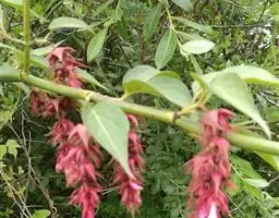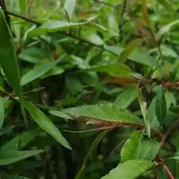 六道木 落叶灌木,高1-3米;幼枝被倒生硬毛,老枝无毛;叶矩圆形至矩圆状披针形,长2-6厘米,宽0.5-2厘米,顶端尖至渐尖,基部钝至渐狭成楔形,全缘或中部以上羽状浅裂而具1-4对粗齿,上面深绿色,下面绿白色,两面疏被柔毛,脉上密被长柔毛,边缘有睫毛;叶柄长2-4毫米,基部膨大且成对相连,被硬毛。