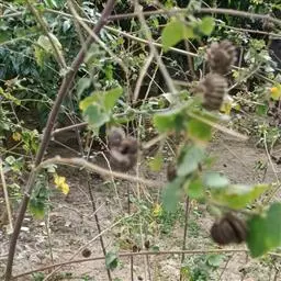 咖啡黄葵 Moench)亦称黄秋葵,是锦葵科一年生草本植物。茎圆柱形,疏生散刺。叶掌状,裂片阔至狭,…
