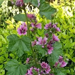 锦葵:二年生或多年生直立草本,高50-90厘米,分枝多,疏被粗毛。叶圆心形或肾形,…