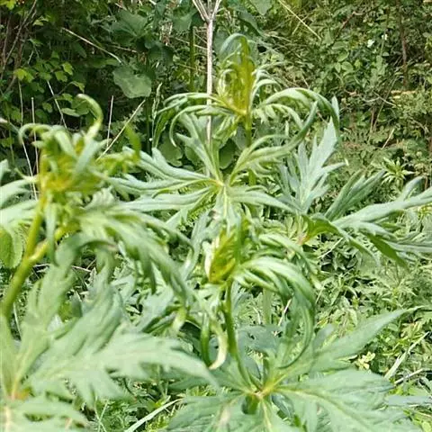 中部以上密生叶(间或叶较疏生),不分枝或分枝。茎下部在开花时枯萎,中部叶有短柄;叶片形状似伏毛铁棒锤,宽卵形,长3.4-5.5厘米,宽4.5-5.5厘米,小裂片线形,宽1-2.2毫米,两面无毛;叶柄长约4-5毫米。