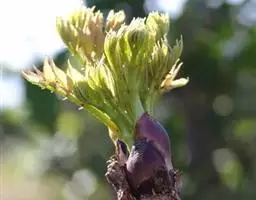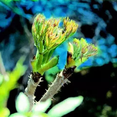 ⑤及时采收: 楤木栽种后2-3年主茎横径达4-5m,茎杆顶端萌发粗壮肥嫩的芽包。当芽包外层包片紧抱基部,尖端微开口时,即可用刀片割下芽包供应市场。