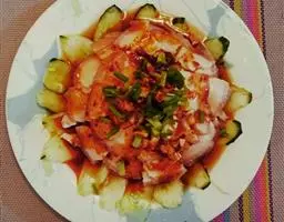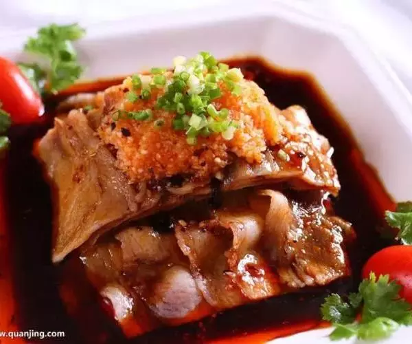 口水鸡 "口水鸡"这名字乍听有点不雅,不过这名字的来历倒却有着文人的温雅。郭沫若在所著《賟波曲》中,有:"少年时代在故乡四川吃的白砍鸡,白生生的肉块,红殷殷的油辣子海椒,想想就口水长流……。"烹调赐拈来"口水"两字,倒成就了大名鼎鼎的"口水鸡"。