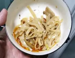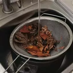 1:制红油时,如果没有过滤网,将葱、姜、蒜捞出后,再将油冲入辣椒粉中。