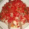 3、将酱油、盐、糖、醋混合两勺红油、搅拌均匀后、淋在鸡肉上面。根据你自己的口味、可以配一些