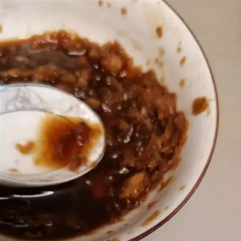 13.姜蒜泥放碗里,调入醋,生抽,白糖,等调料搅拌均匀。