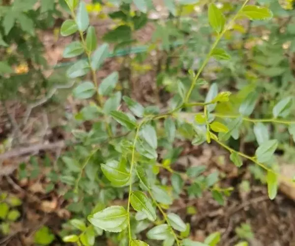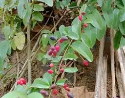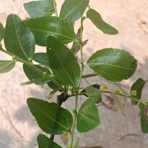 酸枣:落叶灌木或小乔木,高1-4米;小枝称之字形弯曲,紫褐色。酸枣树上的托叶刺有2种,一种直伸,长达3厘米,另一种常弯曲。叶互生,叶片椭圆形至卵状披针形,长1.5-3.5厘米,宽0.6-1.2厘米,边缘有细锯齿,基部3出脉。花黄绿色, 2-3朵簇生于叶腋。核果小,近球形或短矩圆形,熟时红褐色,近球形或长圆形,长0.7-1.2厘米,味酸,核两端钝。花期6-7月,果期8-9月。