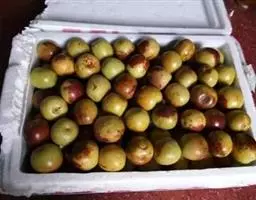 ⑶干燥,贮藏。刚沉淀出的枣核含水量多,应及时摊在平地上晾晒六七天,使其充分干燥。然后收集起来,装入通气的布袋中,放在干燥的室温下贮藏。枣核生活力较强,一般当年或第二年露地播种,出苗率较高,用来嫁接优良枣品种。
