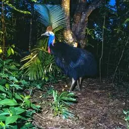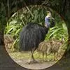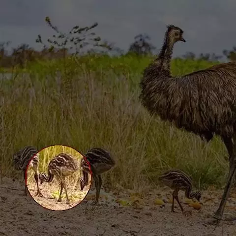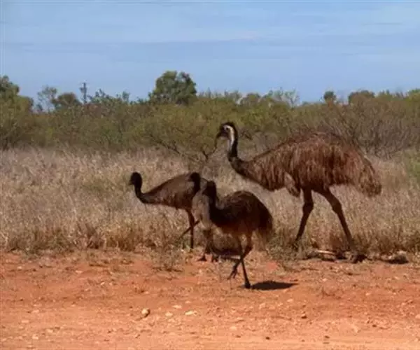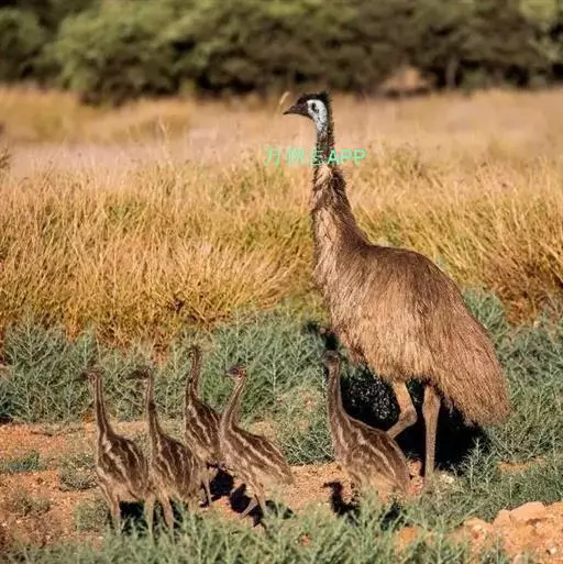 鸸鹋喜爱生活在草原、森林和沙漠地带,全身披着褐色的羽毛,擅长奔跑,时速可达70千米,并可连续飞跑上百公里之遥。鸸鹋虽有双翅,但同鸵鸟一样已完全退化,无法飞翔。躯干、翼被覆纤细的粗发状羽毛,呈灰褐色。以野草、种子、果实等植物及昆虫、蜥蜴等小动物为食。它能泅水,可以从容渡过宽阔湍急的河流。