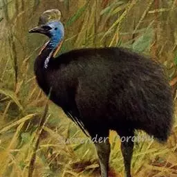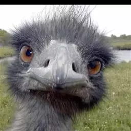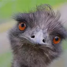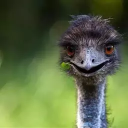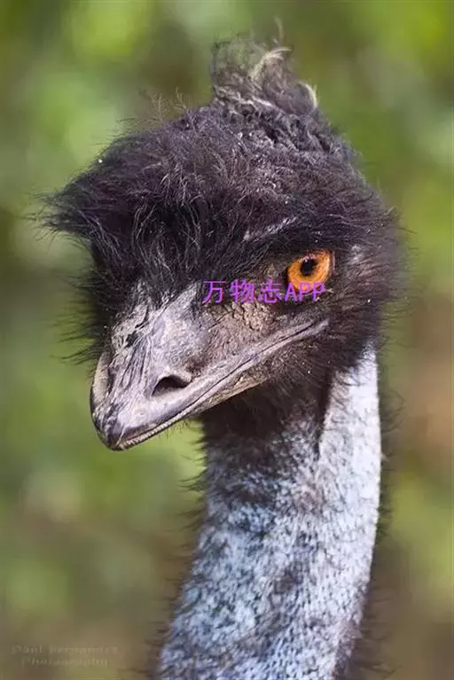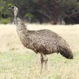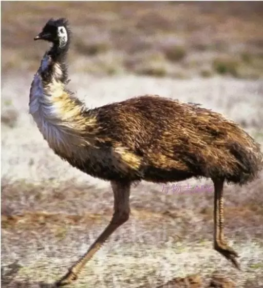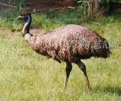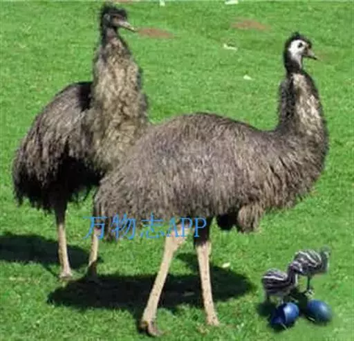 鸸鹋 [ér miáo](学名:Dromaius novaehollandiae):是鸟纲鸸鹋科唯一物种,体高150-185厘米,体重30-45千克,寿命10年。以擅长奔跑而著名,是大洋洲的特产,是世界上第二大的鸟类,仅次于非洲鸵鸟,因此也被称作澳洲鸵鸟。成年雌性比雄性大。鸸鹋形似非洲鸵鸟而较小,属于平胸类,没有龙骨,嘴短而扁,羽毛灰色、褐色或黑色,长而卷曲自颈部向身体的两侧覆盖。翅膀退化,完全无法飞翔。翅膀比非洲鸵鸟和美洲鸵鸟的更加退化,足三趾,是世界上最古老的鸟种之一。