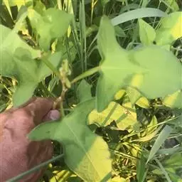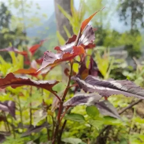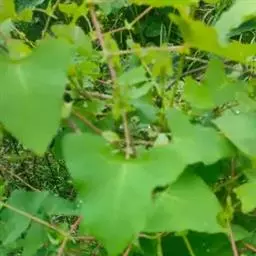 杠板归,一年生攀援草本。其茎略呈方柱形,有棱角,多分枝,直径可达0.2cm;表面紫红色或紫棕色,棱角上有倒生钩刺,节略膨大,节间长2~6cm,断面纤维性,黄白色,有髓或中空。叶互生,有长柄,盾状着生;叶片多皱缩,展平后呈近等边三角形,灰绿色至红棕色,下表面叶脉和叶柄均有倒生钩刺;托叶鞘包于茎节上或脱落。短穗状花序顶生或生于上部叶腋,苞片圆形,花小,多萎缩或脱落。气微,茎味淡,叶味酸。常生于山谷、灌木丛中或水沟旁。