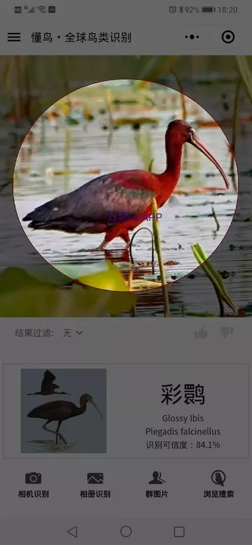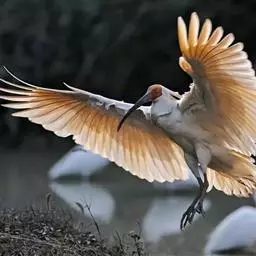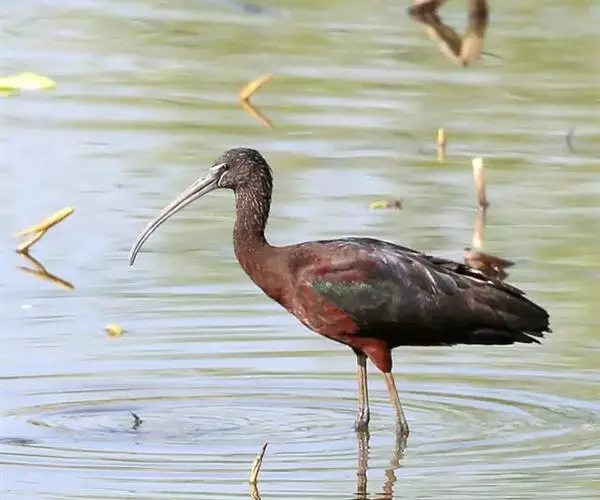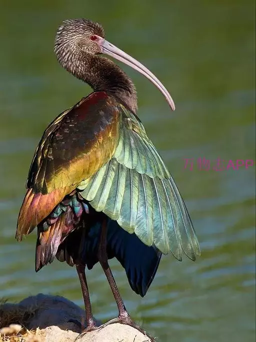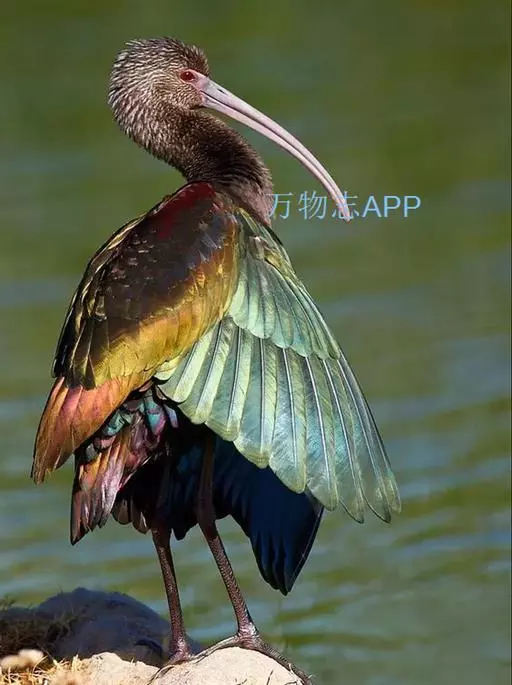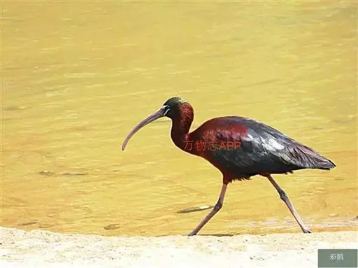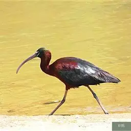 彩鹮(学名:Plegadis falcinellus):是鸟纲、鹮科、彩鹮属的鸟类。体长48-66厘米,翼展80-95厘米,体重485-580克。 是深栗色带闪光的鹮,看似大型的深色杓鹬,上体具绿色及紫色光泽;虹膜褐色;嘴近黑色;脚绿褐色;脸部裸露,裸皮及眼圈铅色;颈、上背、肩和最内侧翼上覆羽色深。头部除面部裸出外皆被羽,体羽大部为青铜栗色。叫声是带鼻音的咕哝声,于巢区发出咩咩及咕咕的叫声。