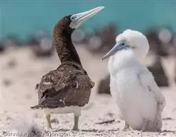 叫声:带鼻音的咕哝声,于巢区发出咩咩及咕咕的叫声。