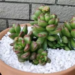 玉米石是景天科、景天属植物。多年生草本多浆植物。植株低矮丛生,多分枝。叶膨大成圆筒形、卵形或近小球形,…