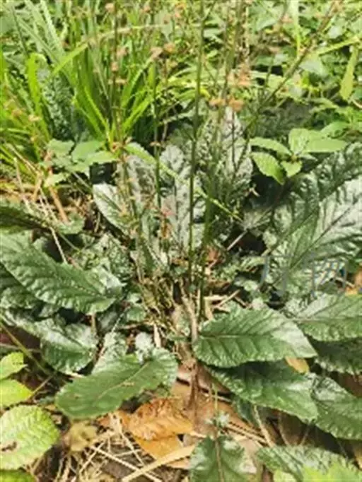 血盆草 原变种为贵州鼠尾草。这一变种与原变种不同在于叶全部基出或稀在茎最下部着生,通常为单叶,心状卵圆形或心状三角形,稀三出叶,侧生小叶小,叶片长3.5-10.5厘米,宽约为长之1/2,先端锐尖或钝,具圆齿,无毛或被疏柔毛,叶柄常比叶片长,无毛或被开展疏柔毛;花序被极细贴生疏柔毛,无腺毛;花紫色或紫红色。