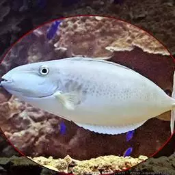 额斑刺蝶鱼,体卵圆形侧扁,有鲜明蓝色轮廓和数条鲜蓝竖纹,全身密布网格状具蓝色边缘的珠状黄点,深蓝色…
