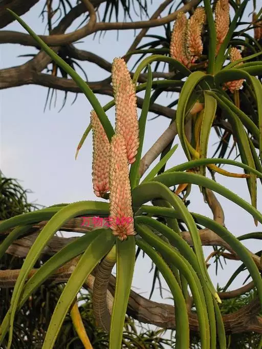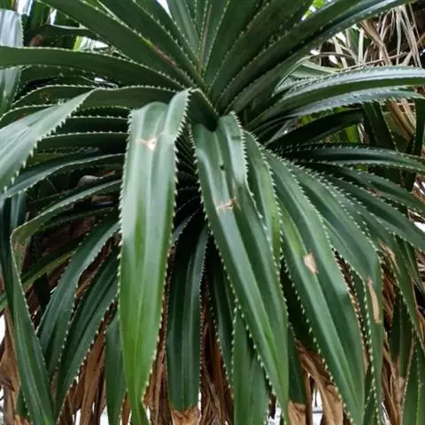 常绿分枝灌木或小乔木,常左右扭曲,具多分枝或不分枝的气根。叶簇生于枝顶,三行紧密螺旋状排列,条形,长达80厘米,宽4厘米,先端渐狭成一长尾尖,叶缘和背面中脉均有粗壮的锐刺。