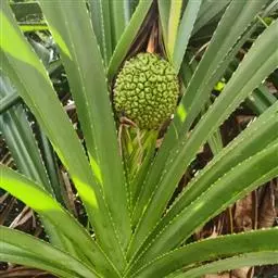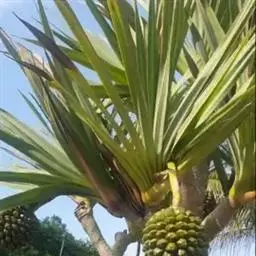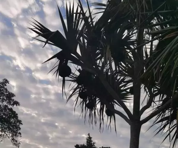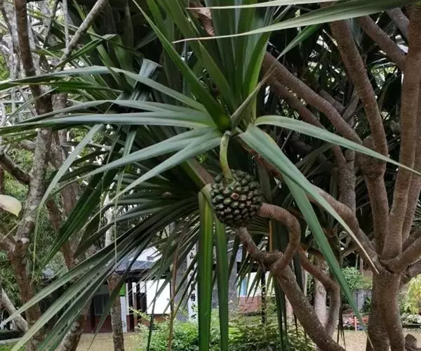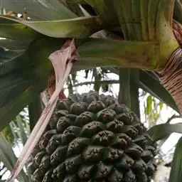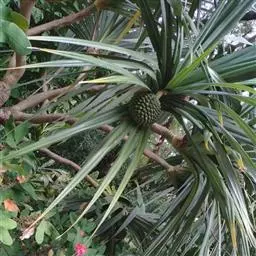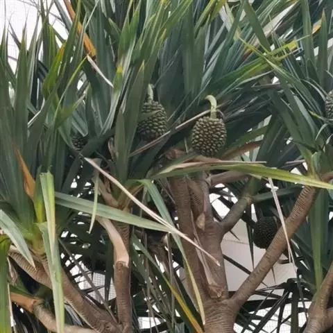 露兜树(学名:Pandanus tectorius Sol.)是露兜树科,露兜树属常绿分枝灌木或小乔木,常左右扭曲,叶簇生于枝顶,叶片条形,长可达80厘米,叶缘和背面中脉均有粗壮的锐刺。雄花序由若干穗状花序组成,佛焰苞长披针形,近白色,雄花芳香,花药条形,药基心形,雌花序头状,单生于枝顶,圆球形;佛焰苞多枚,乳白色,幼果绿色,成熟时桔红色;核果束倒圆锥形,1-5月开花。