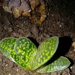 叶米白色,叶面具血红色斑纹。