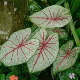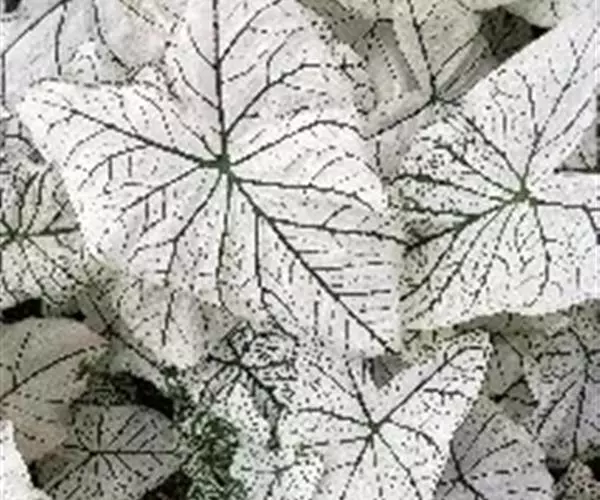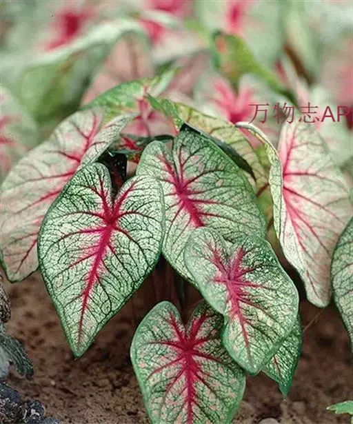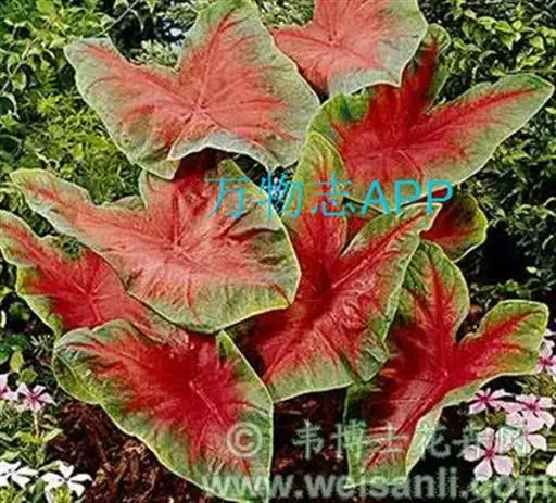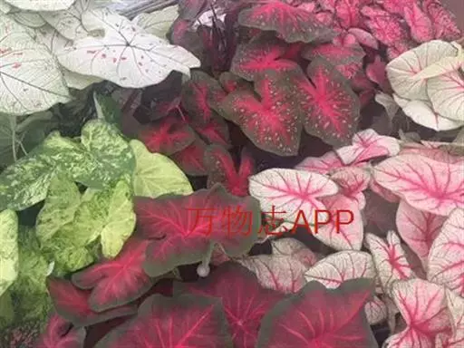 另外有小叶彩叶芋,叶小,卵圆心形,叶脉深绿色,叶面具乳白色不规则斑纹。