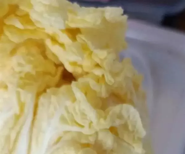 做法:先用刀尖顺着盒子的四壁轻轻地划一圈,然后把豆腐盒倒扣在菜板上,白嫩嫩的豆腐就可以完整地取出来了。将豆腐切成5cm见方的大块,切的时候力度要柔一些。
