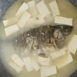 1. 豆腐切成薄块,锅中油至7成热,将豆腐块放入锅中,煎至两面金黄。