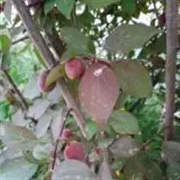 危害症状:以危害叶片和果实为主,患病后叶上有直径2-8毫米的圆形橙红色病斑,病部肥厚有小红点,后期病部由橙红变黑红,叶正面凹背面凸有黑色小点呈馒头状(即病原菌子囊壳)。严重时叶片干枯脱落,果面有红色圆病斑,边缘有不明显的隆起,病果易落。