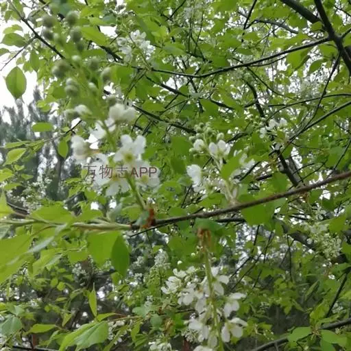 北亚稠李(Padus racemosa(Lam.) Gilib. var.asiatica(Kom.) Yu et Ku):该变种的主要特点为小枝和总状花序、花梗和总花梗均被短柔毛。花期4-6月,果期6-10月。分布于于黑龙江、吉林、辽宁、河北、山东、山西、内蒙古、陕西、甘肃和新疆等省区。苏联、蒙古也有分布。生长于海拔800-2700米的山坡、林缘或阔叶林中以及丘陵或河岸等处。