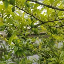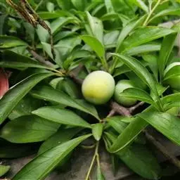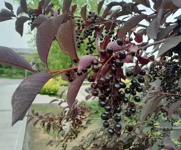 核果卵球形,顶端有尖头,直径8-10毫米,红褐色至黑色,光滑,果梗无毛;萼片脱落;核有褶皱。花期4-5月,果期5-10月。