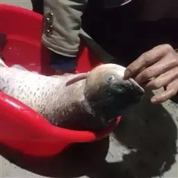 全裸裸重唇鱼,Gymnodiptychus integrigymnatus ,鲤科裸重唇鱼属的一种…