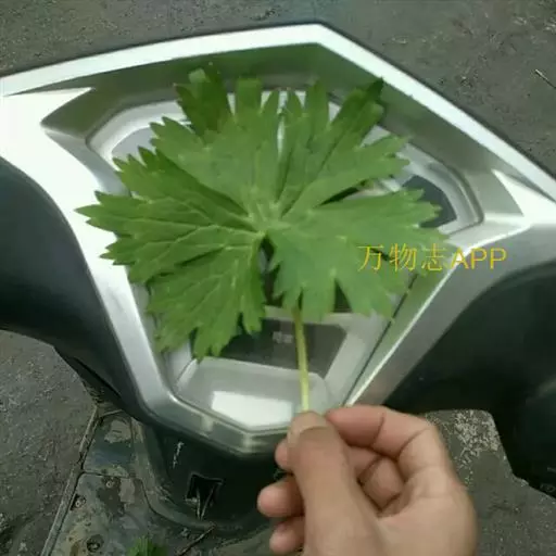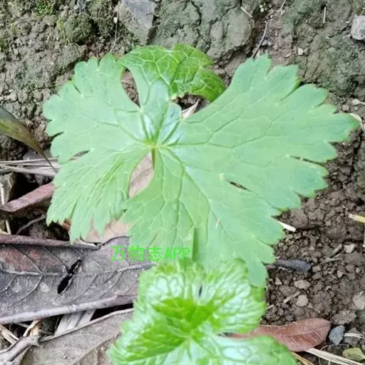 多年生草本植物,根长达20厘米,圆柱形,粗达2厘米。茎高(60-)95-150厘米,中部以下几无毛,上部近花序处被反曲的短柔毛,生4-6枚叶,不分枝或分枝。基生叶1枚,与茎下部叶具长柄;叶片肾形或圆肾形,长12-14.5厘米,宽20-28厘米,基部宽心形,三深裂约至本身长度的6/7处,中深裂片较小,楔状狭菱形,渐尖,三裂边缘有不整齐的三角形锐齿,侧深裂片斜扇形,不等三裂稍超过中部,两面疏被短柔毛或变无毛;叶柄长30-50厘米,具浅纵沟,几无毛。