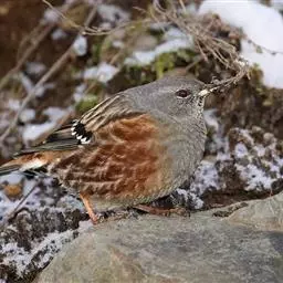领岩鹨 领岩鹨为高山鸟,栖息于2200米到3100米左右的高山针叶林带及多岩地带或灌木丛中,冬天下降至溪谷中栖息。该种鸟类常在岩石附近及灌木丛中寻食。