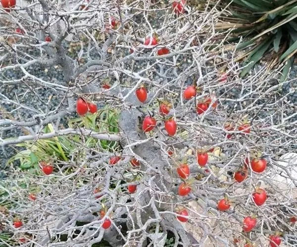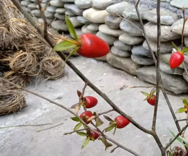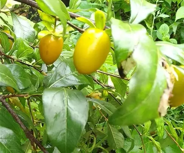 果单生,球形,直径约2厘米,嫩时黄绿色,有柔毛,后变橙黄色,熟时桔红色,有蜡样光泽,无毛,顶端有小突尖;有种子2-4颗;种子褐色,半球形或近三棱形,长约1厘米,宽约6毫米,背部较厚,宿存萼4深裂,裂片革质,长圆状披针形,长1.6-2厘米,宽4-6毫米,先端急尖,有明显的纵脉;果柄纤细,长1.5-2.5厘米。花期4-5月,果期9-10月。 [1-2]