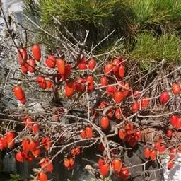 3.修剪:一是春季发芽前,3月前,此时剪后易在枝上萌发新芽,二是夏季剪去春季生长过长枝条,保持较好的比例,剪后其观赏期长,并能使秋芽回缩枝形紧凑。三是入秋待枝增粗剪后孕育春芽,秋剪注意保留结果小枝,以利雌株结果。抓住三个修剪的关键时间,可使树型枝式紧凑完美。而冷地型老鸦柿每年主要是发春芽,必须在中秋前缩剪,才易孕育新芽过冬而旺发春芽。