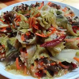 梅菜扣肉(英文名:Pork with salted vegetable),汉族传统名菜,属客家菜 。制作材料有五花肉、梅菜、葱白、姜片等。