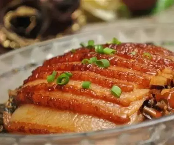 梅菜扣肉,汉族传统名菜,属客家菜 。制作材料有五花肉、梅菜、葱白、姜片等。