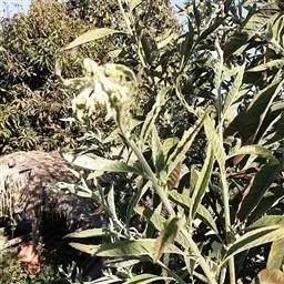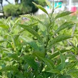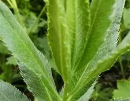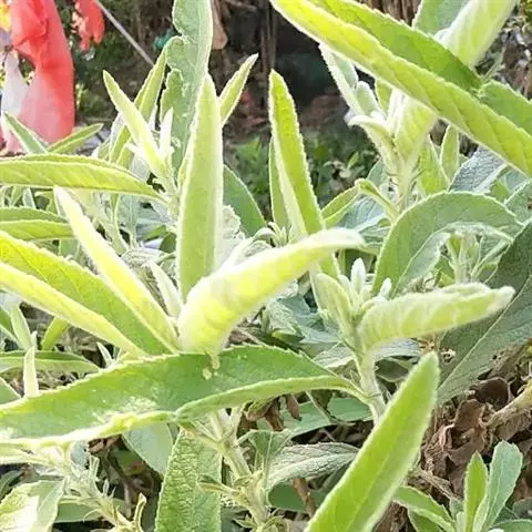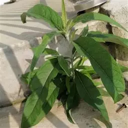 粗壮草本或亚灌木状。茎直立,高0.5-3米,基部径约1厘米或更粗,木质,有分枝,具粗沟纹,被粘绒毛或上部花序轴被开展的密柔毛,杂有腺毛,叶腋常有束生的白色或污白色糙毛,有时绒毛多少脱落,节间长约5厘米,在下部较短。下部叶近无柄,倒卵形、倒披针形或椭圆形,长20-22厘米,宽6-8厘米,基部渐狭,顶端短尖,边缘有不规则粗细相间的锯齿,在两粗齿间有3-5个细齿,上面被疏糙毛,下面被糙伏毛,脉上的毛较密,杂有多数腺体,侧脉10-16对,在下面多少凸起,有明显的网脉;中部叶倒卵状长圆形或长椭圆形,长12-18厘米,宽4-5厘米,基部渐狭,下延,有时多少抱茎;上部叶较小,披针形或卵状披针形。
